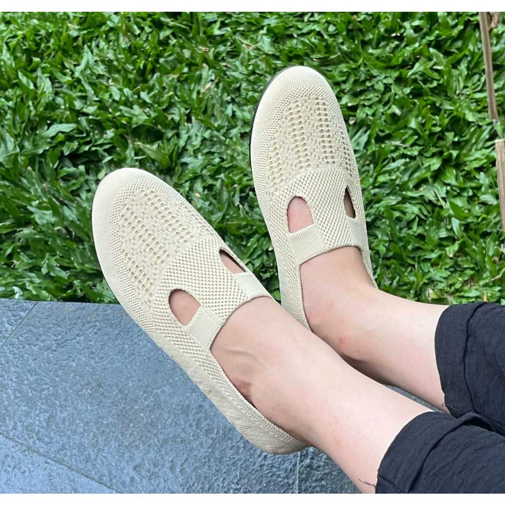 sepatu wanita flat shoes sepatu flat sol karet hitam anti licin + kotak 110
