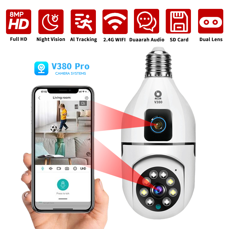 V380 Pro Lampu CCTV Wifi Wireless 360 PTZ Full View Remote Monitoring Smart Security Kamera