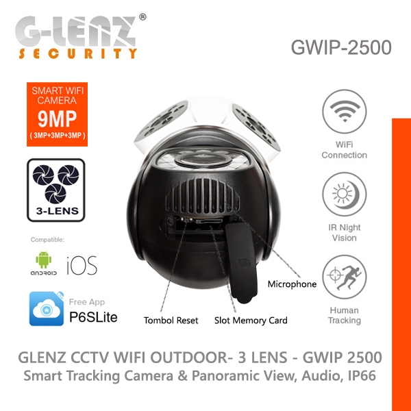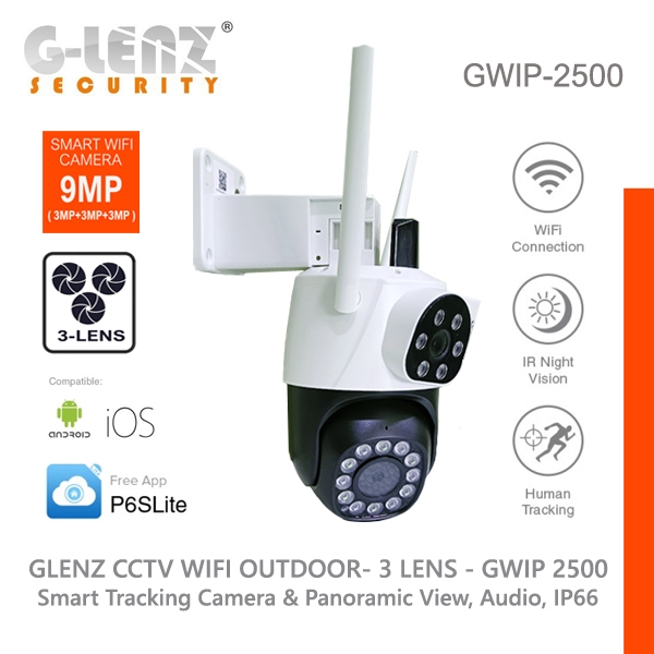 GLENZ SMART CCTV WIFI 3 LENSA (3MPx3) OUTDOOR CAMERA - GWIP 2500