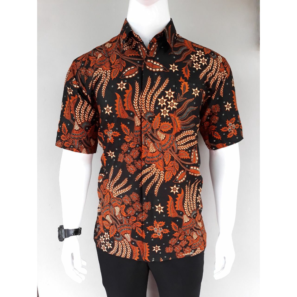 Kemeja Batik Manggar Oren Distro Katun Poly Micro