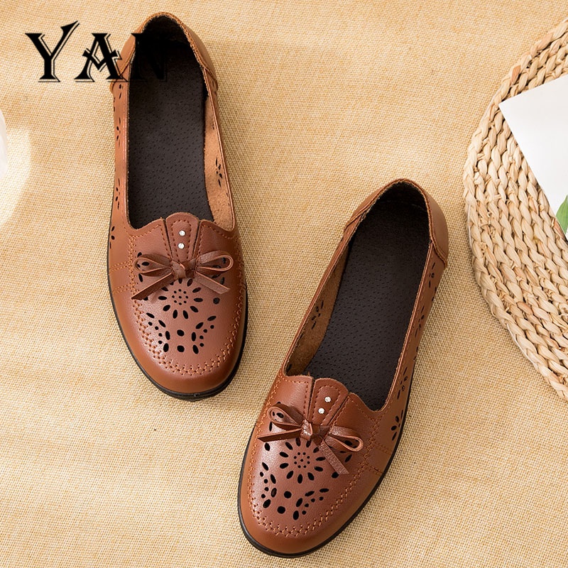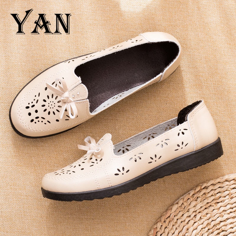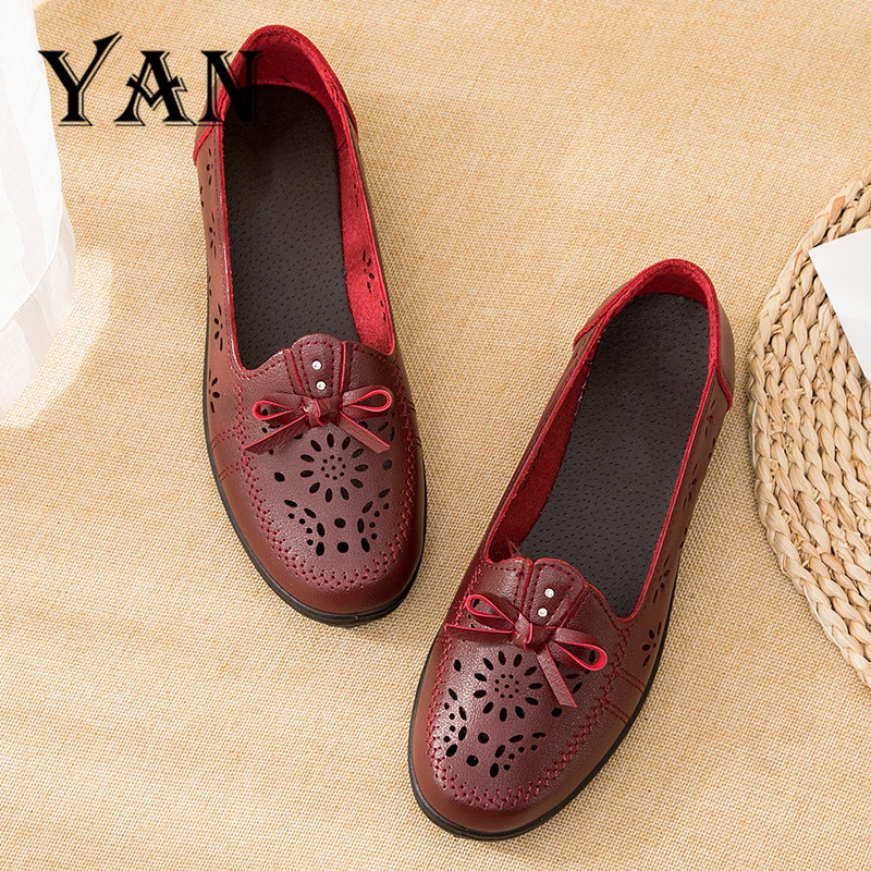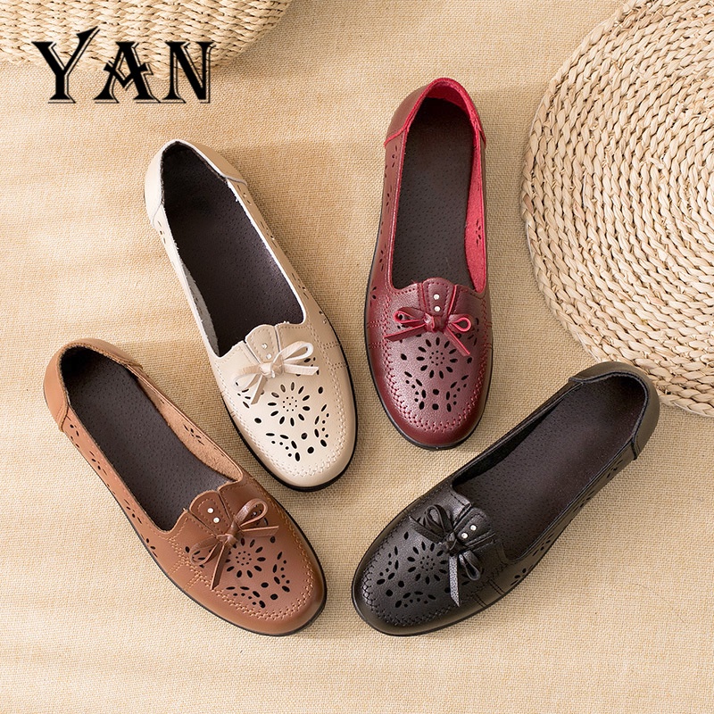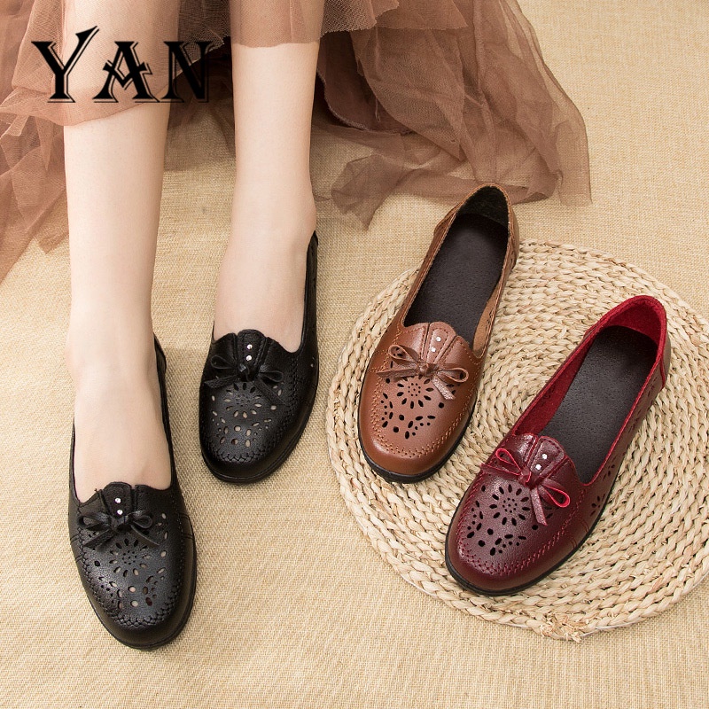 YAN Sepatu Flat Shoes Wanita Kulit Sepatu Slip On Terbaru Sepatu Kantor Nyaman Bernapas