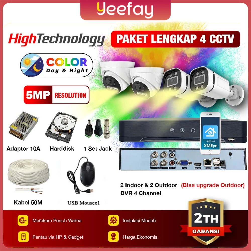 ⚡Garansi 2 tahun⚡Paket CCTV Full AHD 4CH 4 Kamera 5Mp 1080p 2K IP SONY Camera CCTV Audio Series