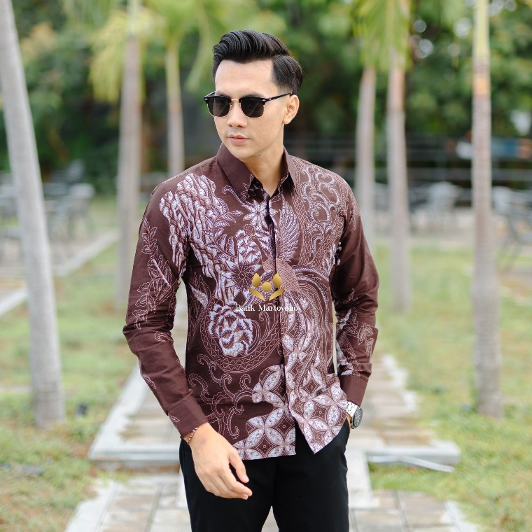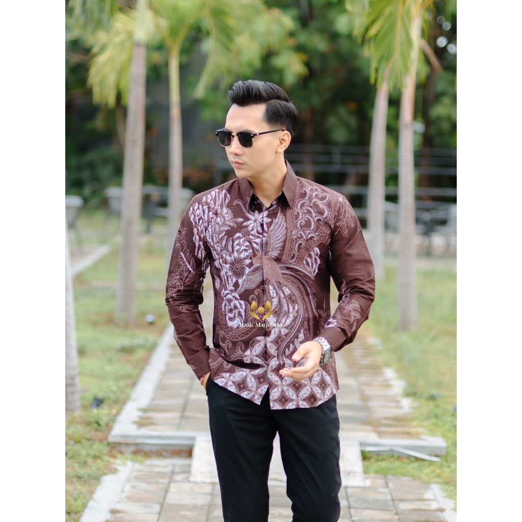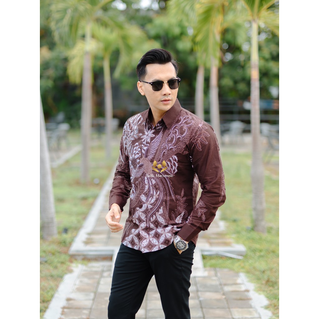 Peksi Coklat Mahogany Baju Batik Pria Lengan Panjang Slimfit Modern
