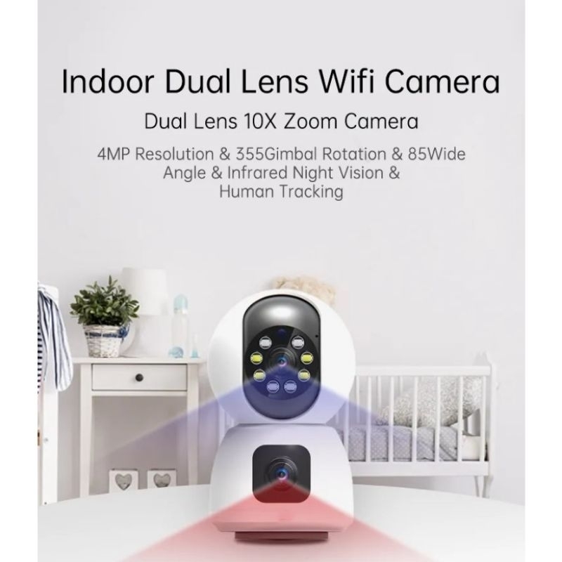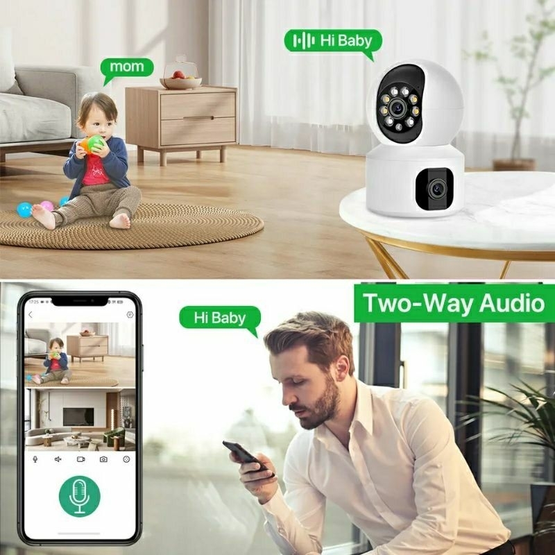 Ip Camera Cctv Wifi V380 8MP Dual Lens 360" PTZ Kamera 2 Screen Monitor Auto Tracking