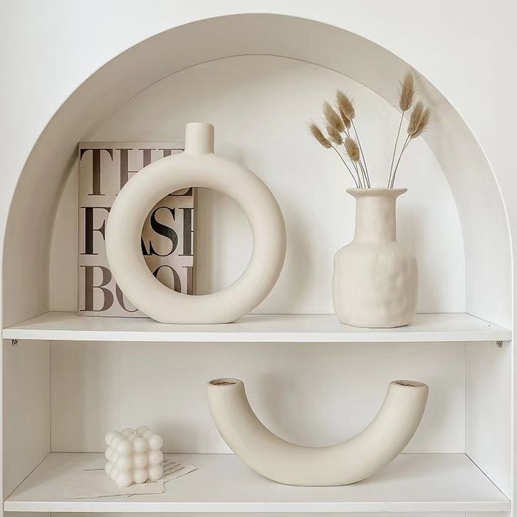 (TERLARIS)Eyre vas keramik putih bunga kering ruang tamu rangkaian bunga meja makan hidroponik meja makan dekorasi rue