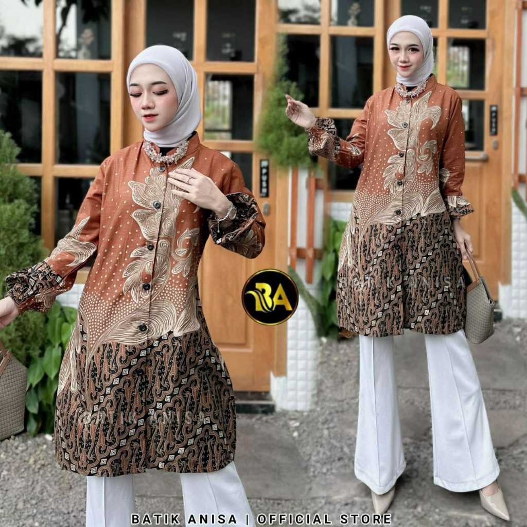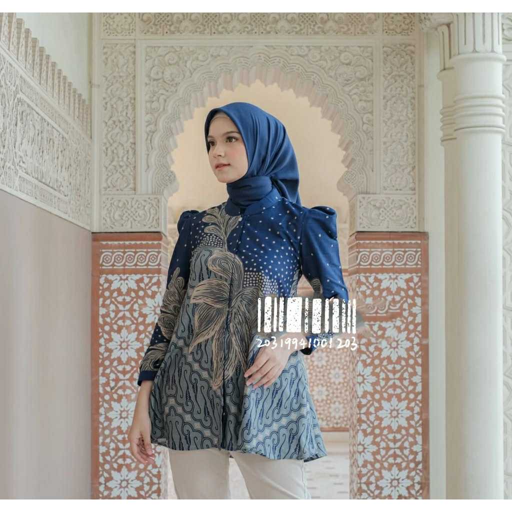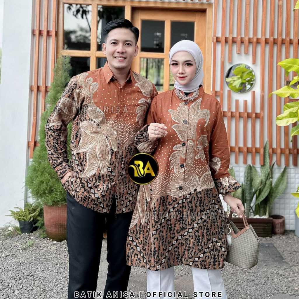 Atasan Baju Batik Couple Hem Blouse Pria Wanita Seragam Kantor Kain Katun