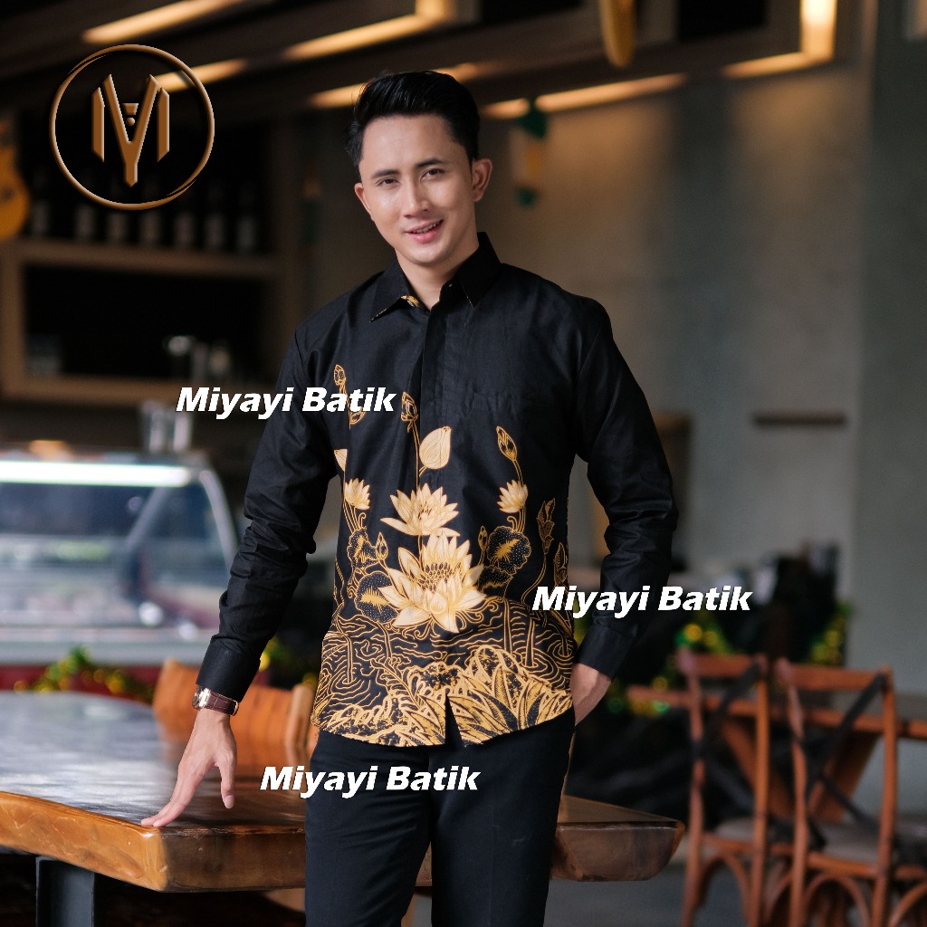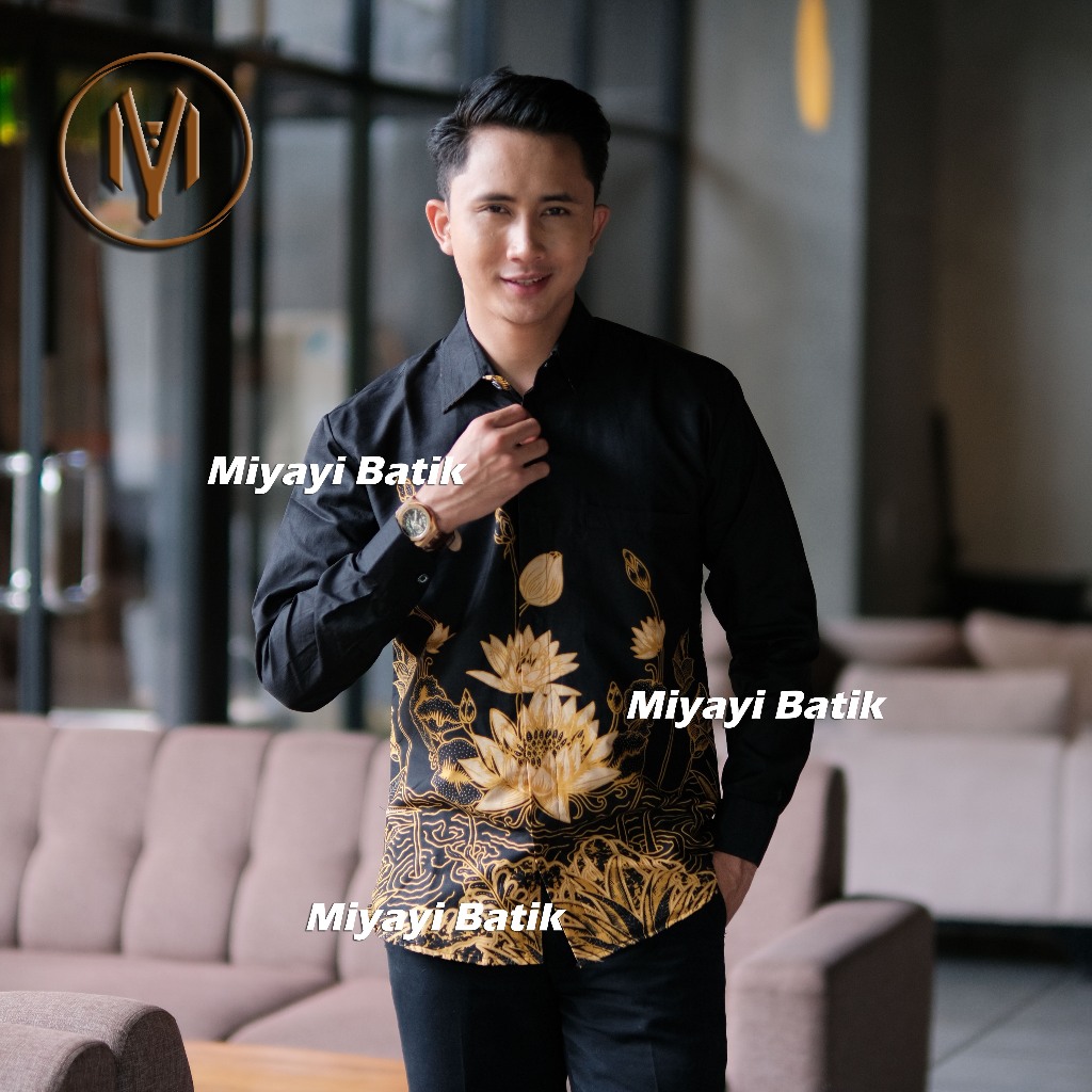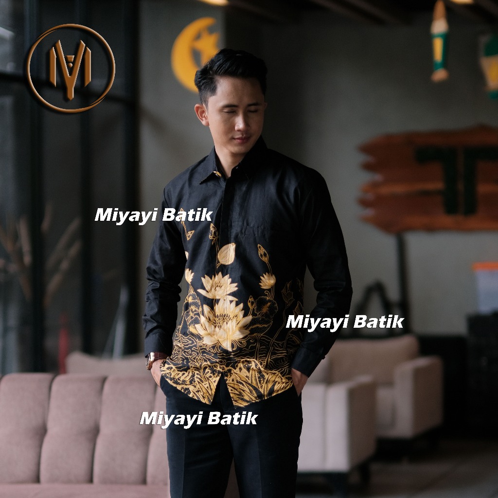 Baju Batik Motif Teratai Hitam Model slimfit lapis furing erro jahitan alusan solo premium