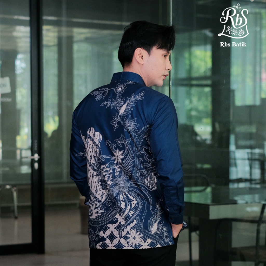 RBS Batik - Kemeja Batik Pria Gumantama Slimfit Lapis Furing Warna Biru Cream Motif Cendrawasih