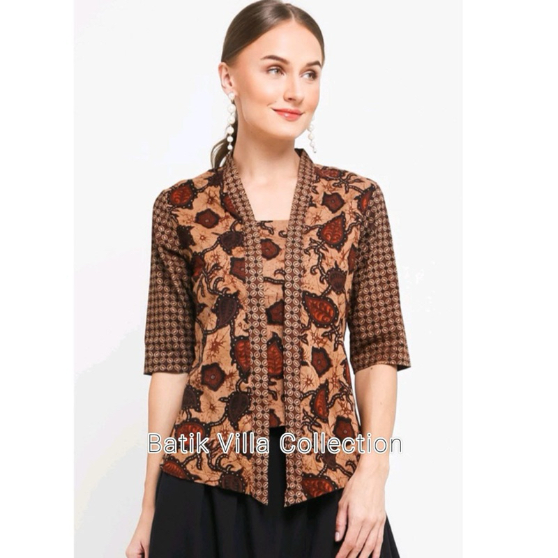 Tey-17 Batik Wanita ASJ SA HRB026 Kenongo Kemeja Tosca Pendek