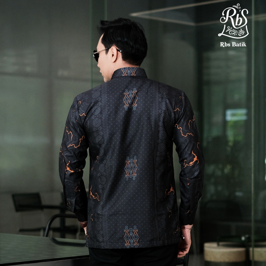 RBS Batik - Kemeja Batik Pria Slimfit Warna Hitam Widura Lengan Panjang Lapis Furing