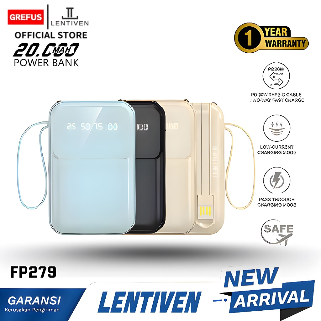 [Mall] POWERBANK GREFUS LENTIVEN Mini 20000Mah 4 Kabel Built-in