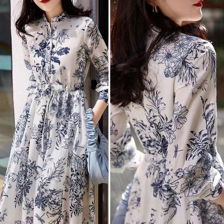 dress smile long dress abstrak wanita gamis vintage floral terbaru casual wanita m654
