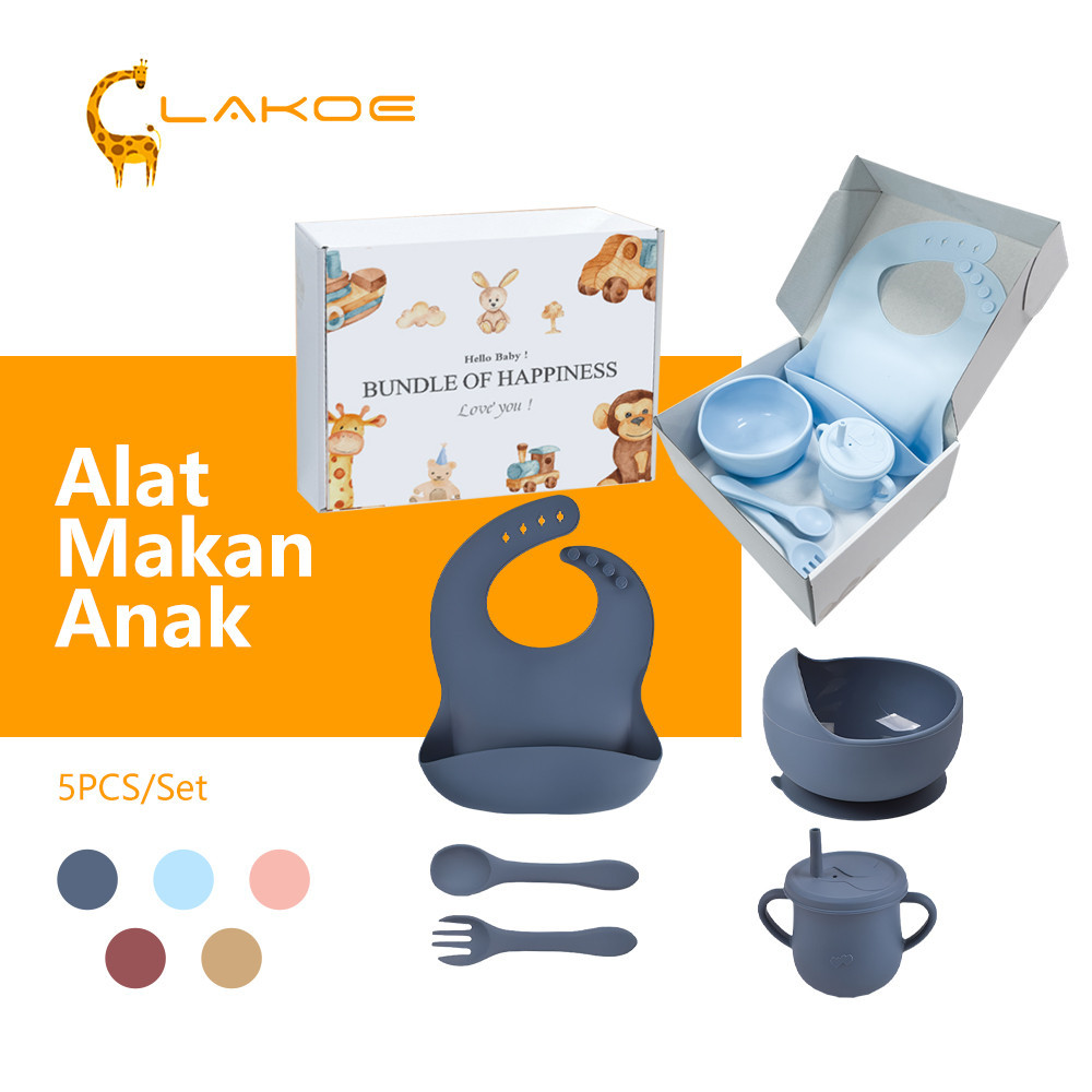 Peralatan Makan Bayi Set Celemek Makan Bayi Mangkok Sendok Anak Training Cup Bayi Silicone 5PCS FREE BOX