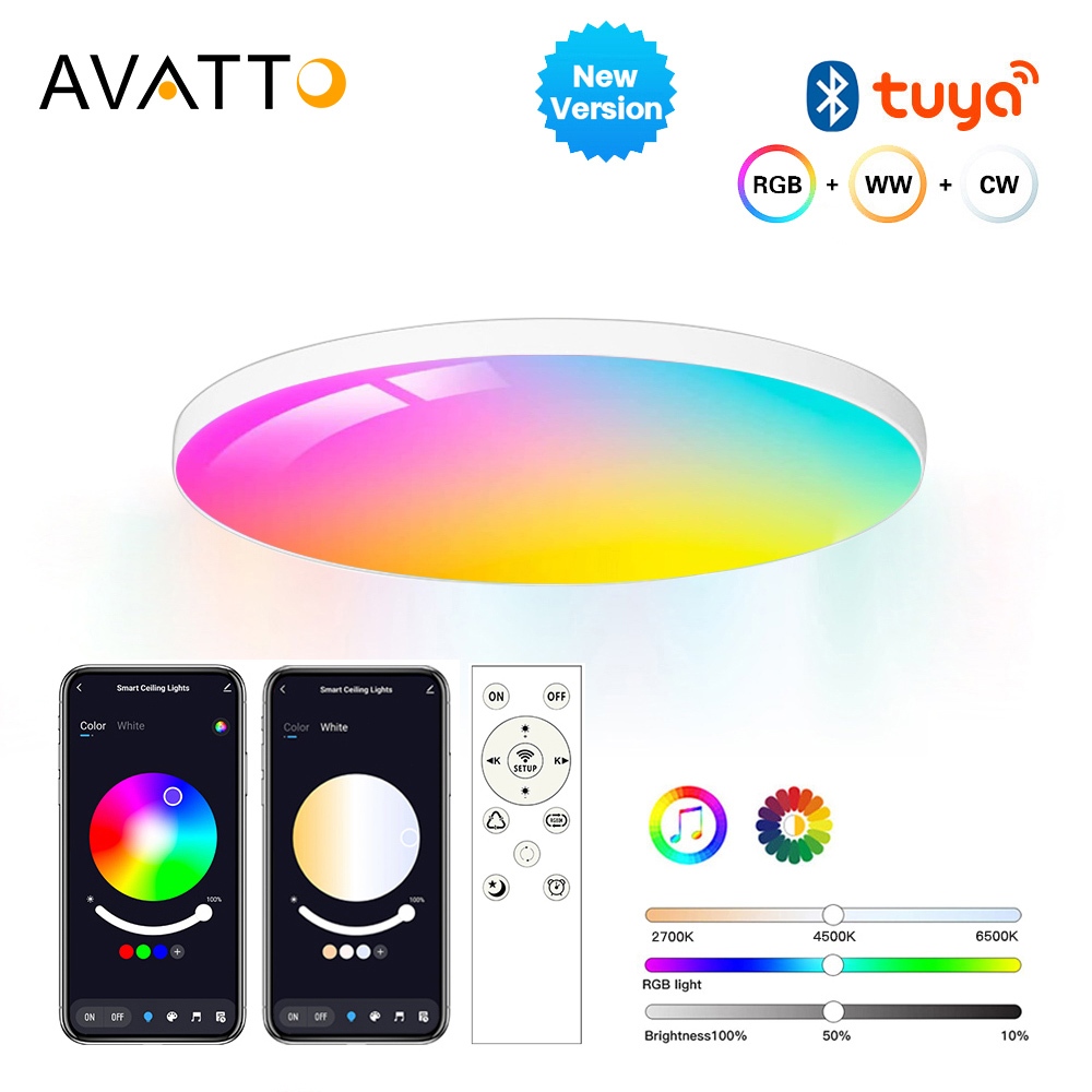 AVATTO WiFi Smart Minimalis Modern Gaya Remote Lampu plafon Bulat Smart Ceiling Light LED Round Ceiling Light 24W RGB