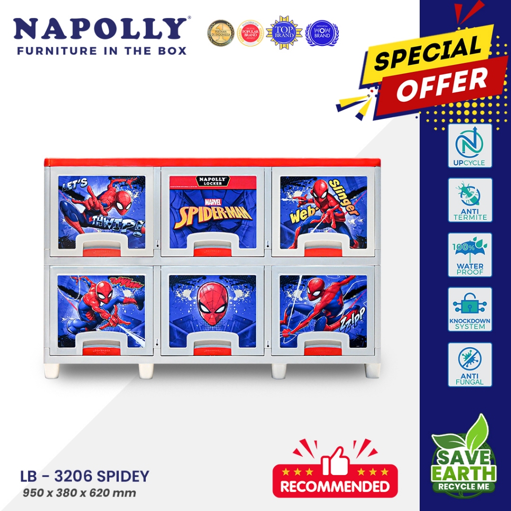 LEMARI PLASTIK NAPOLLY LOCKER BOX KARAKTER SPIDERMAN 6 RUANG PENYIMPANAN