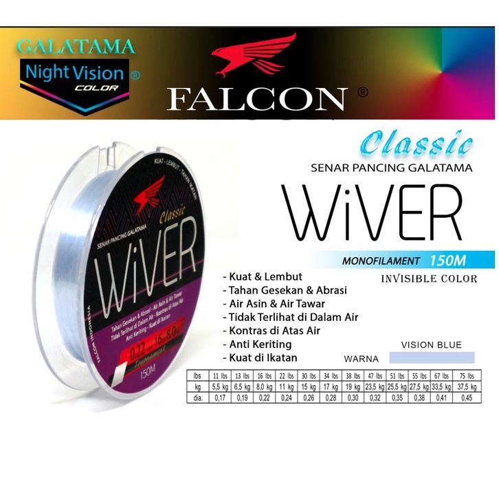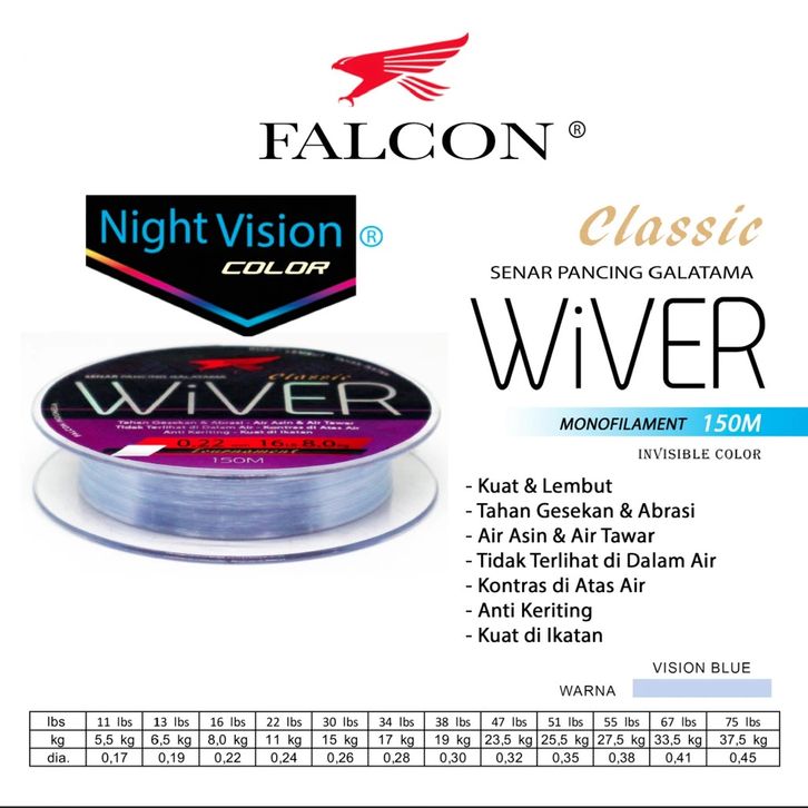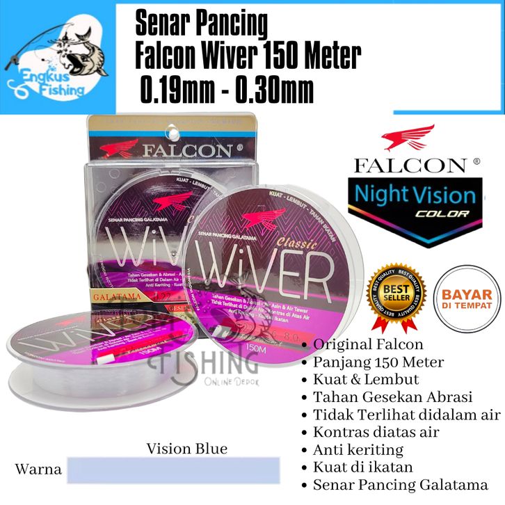 Senar Pancing FALCON WIVER 150 Meter Vision Blue 0.19mm - 0.38mm Murah - Engkus Fishing