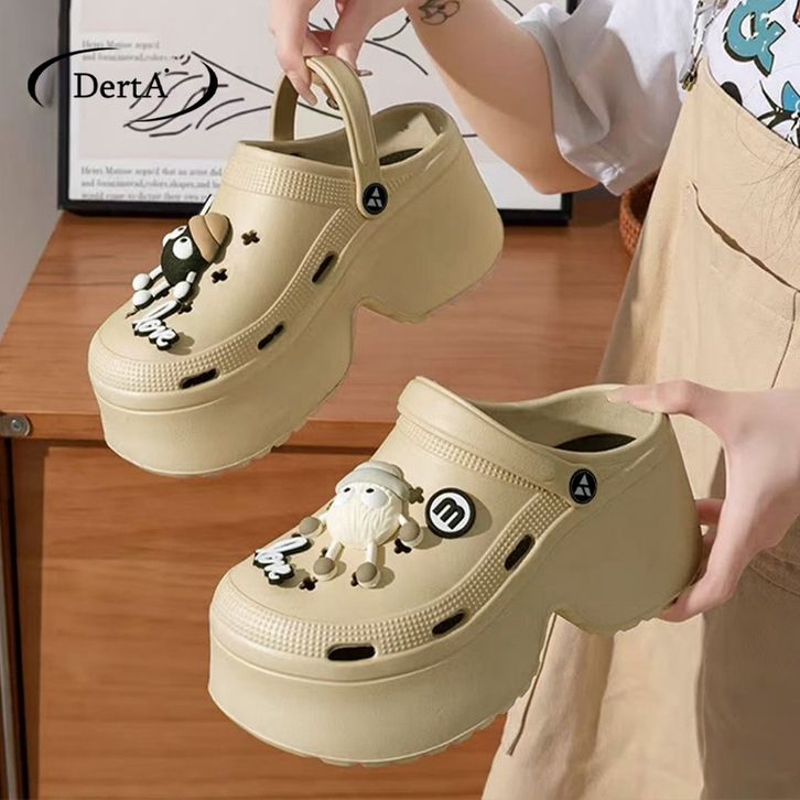 DERTA Sandal Wanita Dewasa Wedges Tinggi Dan Tebal Sendal Fuji Jibbitz Lucu Eva Premium Size 35-40
