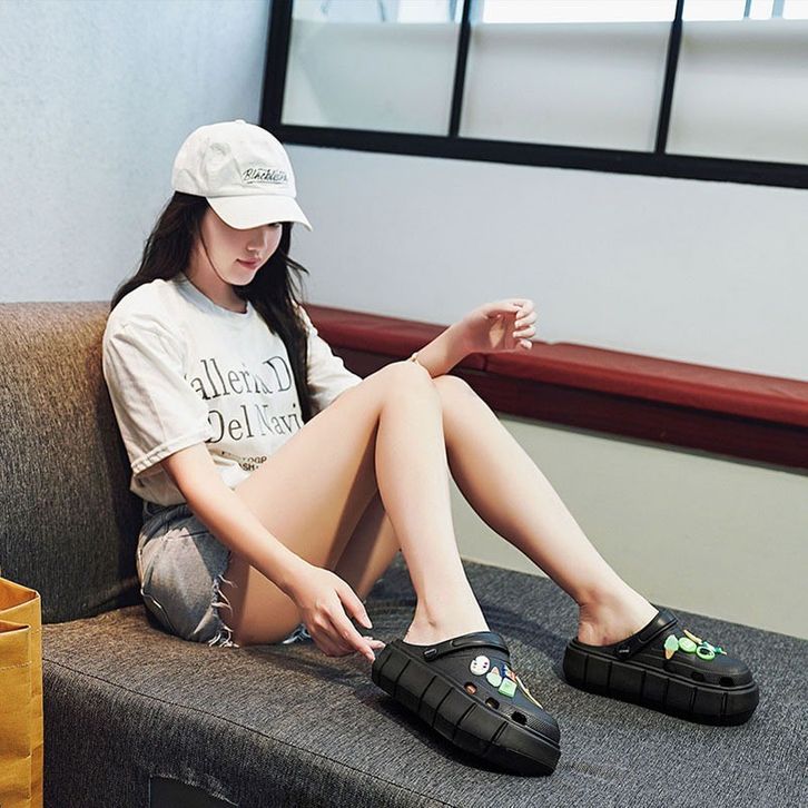 Derta Sandal Crocs Wanita Sandal Wedges Baim Anti Slip Dengan Jibbitz Import EVA Rubber Size 30-41