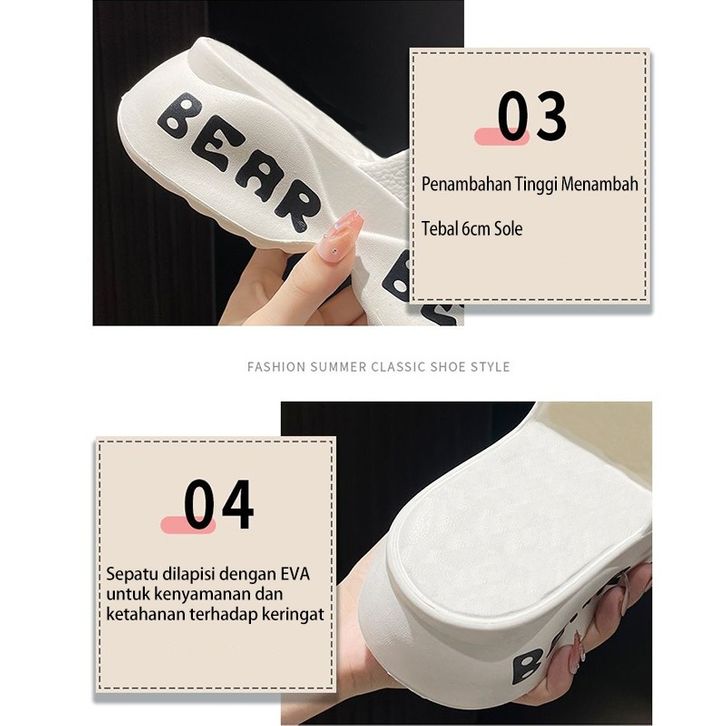 Derta-Sandal Wedges Wanita Kekinian Sendal Slop Wanita Jelly Motif Bear Sendal Platform Rubber 35-40