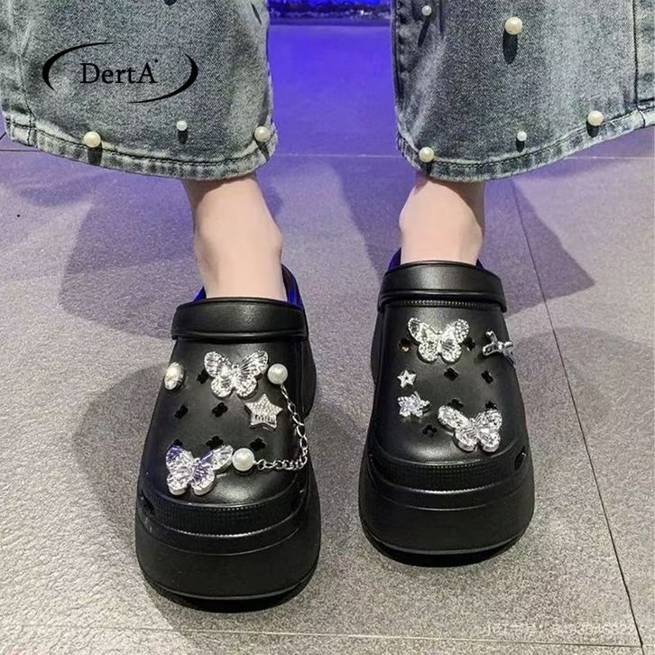 DERTA Sandal Jibbitz Wanita Menggemaskan Terbaru Sendal Karet Penambah Tinggi Bahan Karet Size 35-40