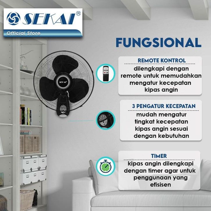 Sekai WFN-1628R Kipas Angin Dinding Wall Fan 16 Inchi + Remote Garansi Resmi PROMO