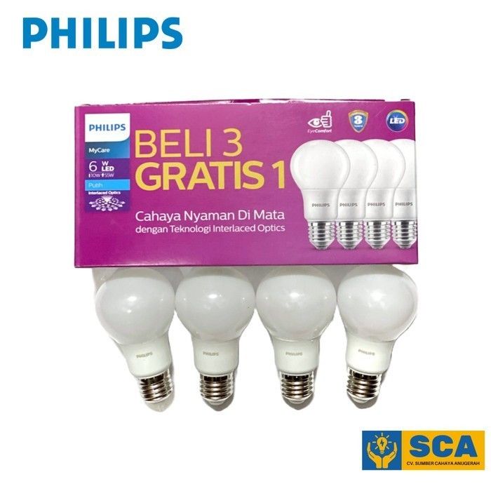 PHILIPS LAMPU PAKET 6W LED BULB BELI 39rATIS 1 WARNA PUTIH 6500K 6W MULTIPACK BELI 3 BONUS 1 PROMO