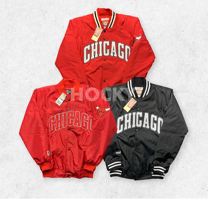 Jaket Rider Jaket Sunmori HOCKY - Jaket Chicago Bulls Red Varsity Baseball Taslan Bordir Pria Wanita