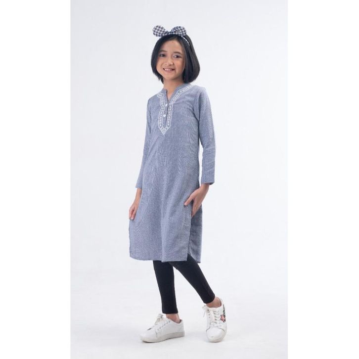 NEW Zlata aksara kids kemeja koko lengan panjang anak perempuan, Katun biru Harstand girl 19.06 esismn