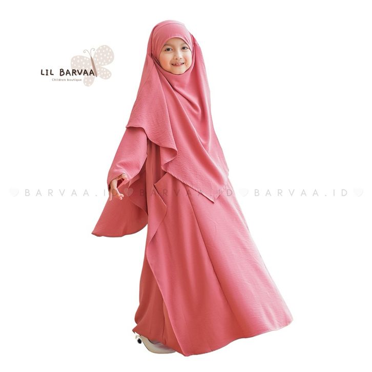 TERLAKU Lil Barvaa - Alinna Pink Gamis Set French Khimmar Anak Perempuan inamng