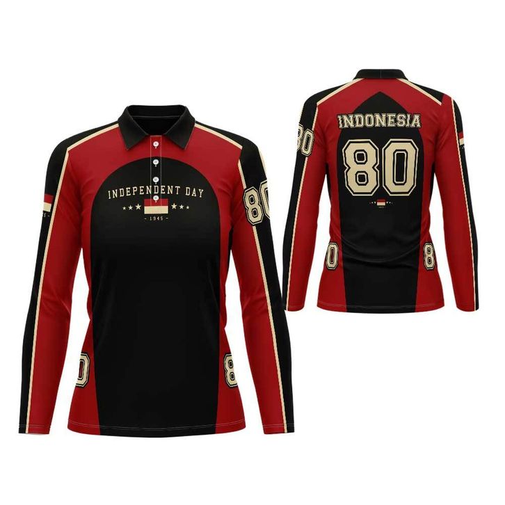 TERLARIS Baju Berkerah Wanita Dewasa 17 Agustus HUT RI-80 Desain Fullprint Terbaru ufabc