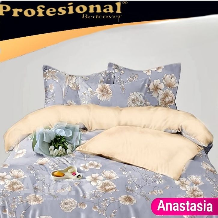 TERLARIS BED COVER SET NEW MOTIF ANASTASIA BLUE MIX IVORY - BUNGA - BIRU DAN CREAM - UKURAN 160X200 - 180X200 - 200X200