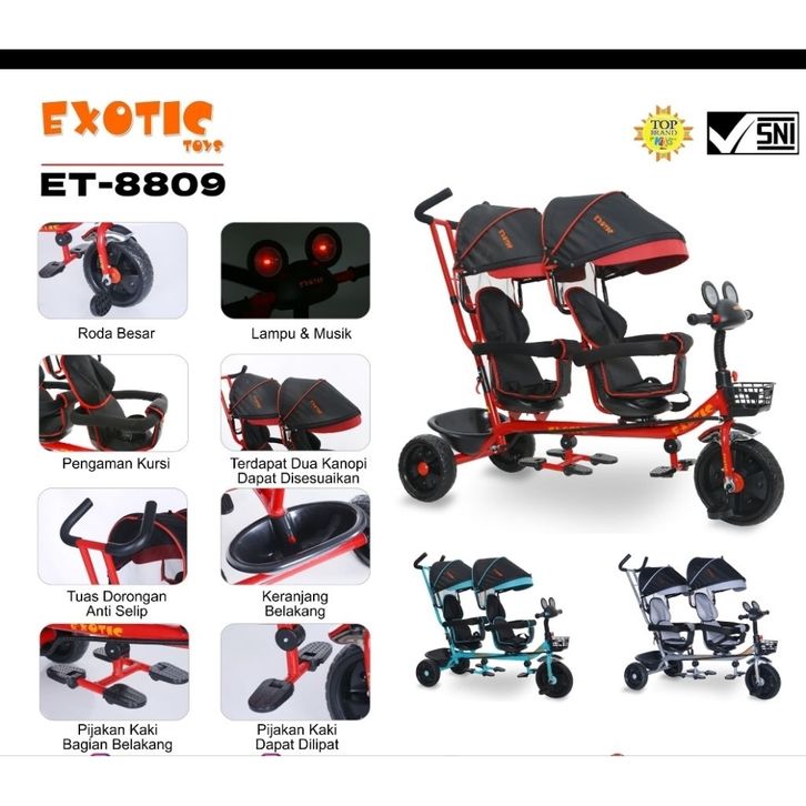 Sepeda Anak Roda 3 Kembar EXOTIC ET 8809 ET-8809 et8810 et 8810 2 kursi