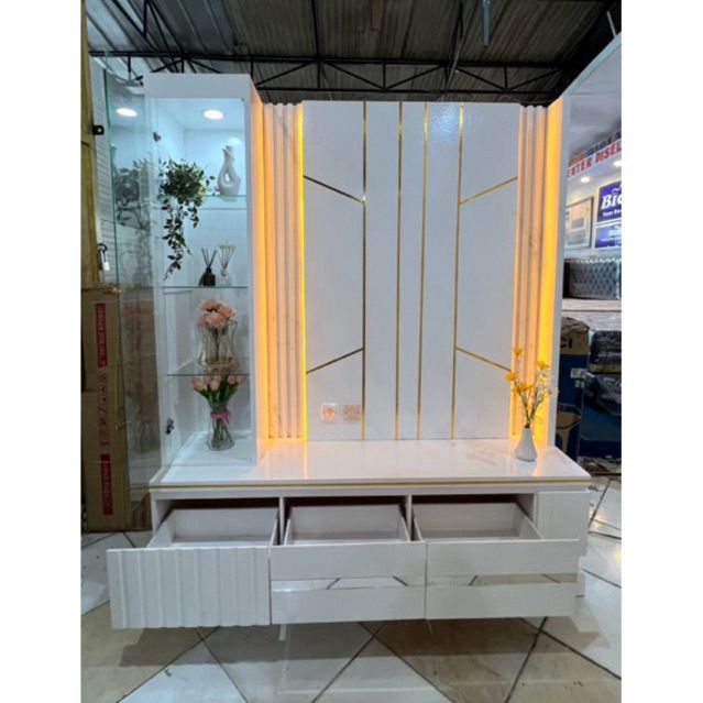 Bufet/Backdrop Tv Jesika Led/Aesthetic List gold