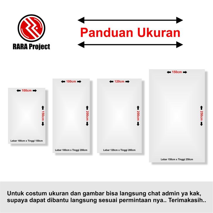 L 100cm x T 150cm, L 100cm x T 200cm, L 120cm x T 200cm, L 150cm x T 250cm