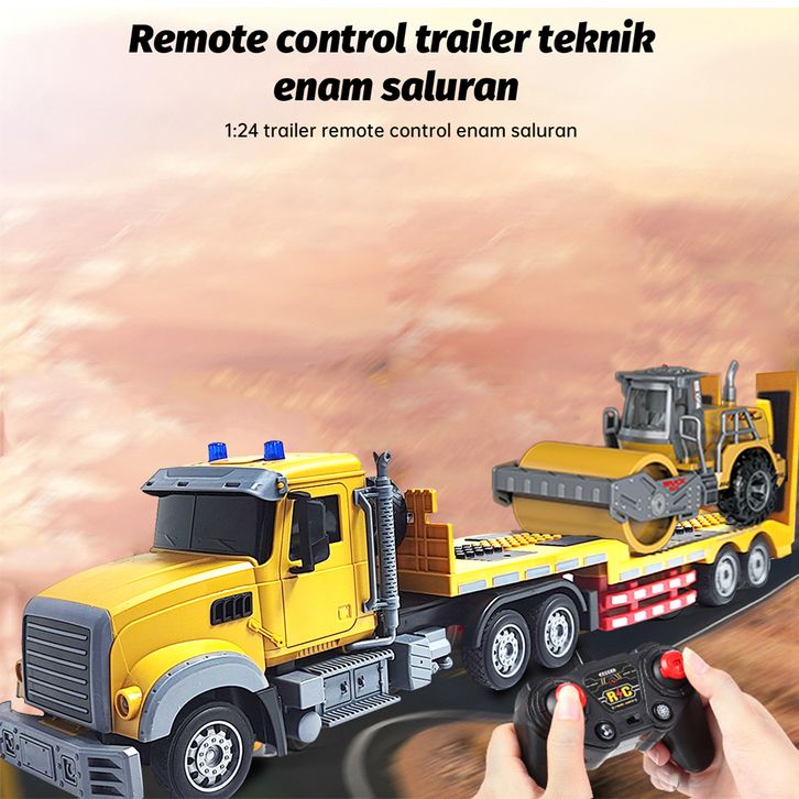 Trailer Kendaraan Rekayasa Remote Control 2.4 GHz Eskavator Gaya Amerika 1:24 Lampu dan Musik 6 Saluran Trailer