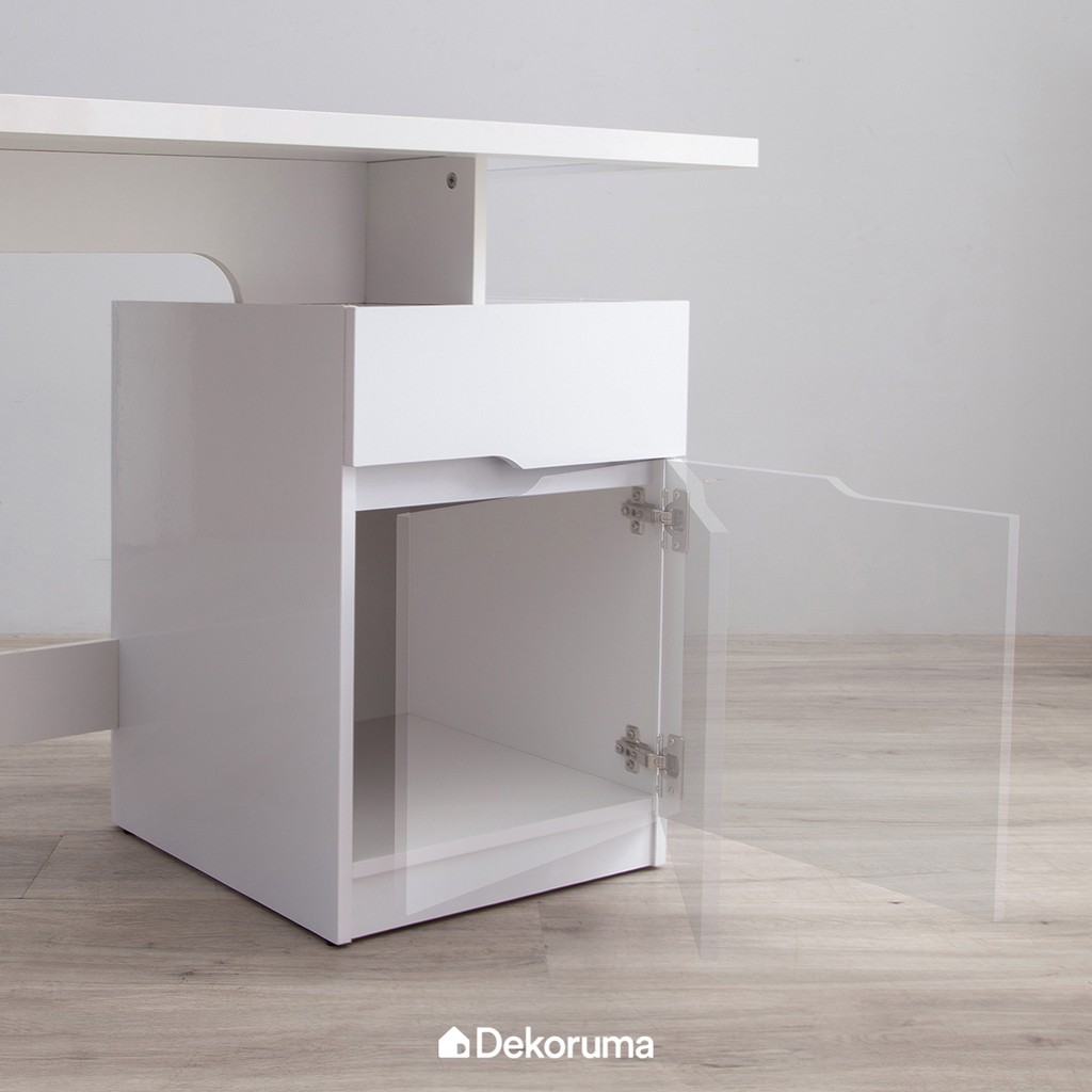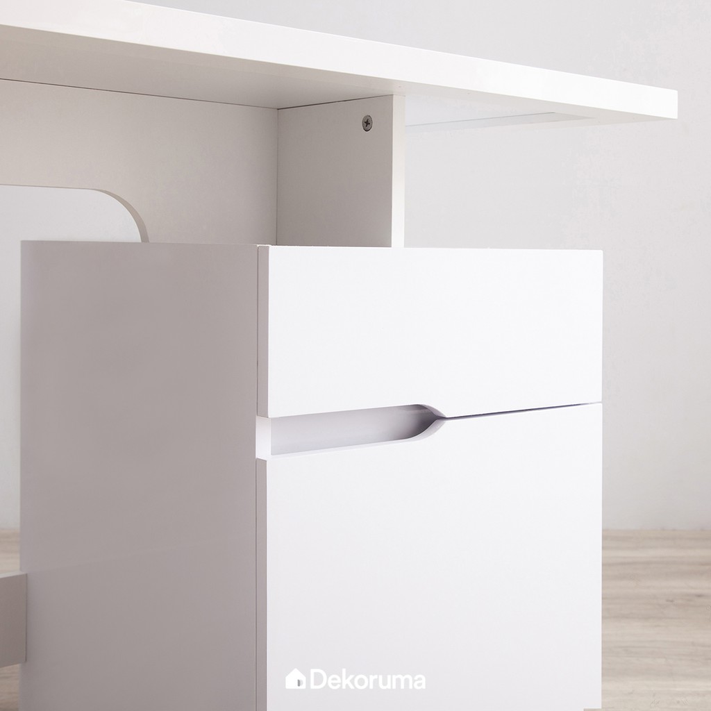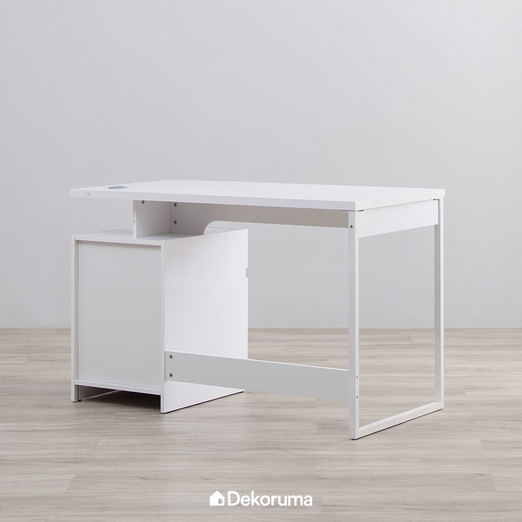 DEKORUMA LEXA DESK - MEJA BELAJAR MINIMALIS / MEJA KERJA PUTIH DENGAN LEMARI DAN LACI BESI
