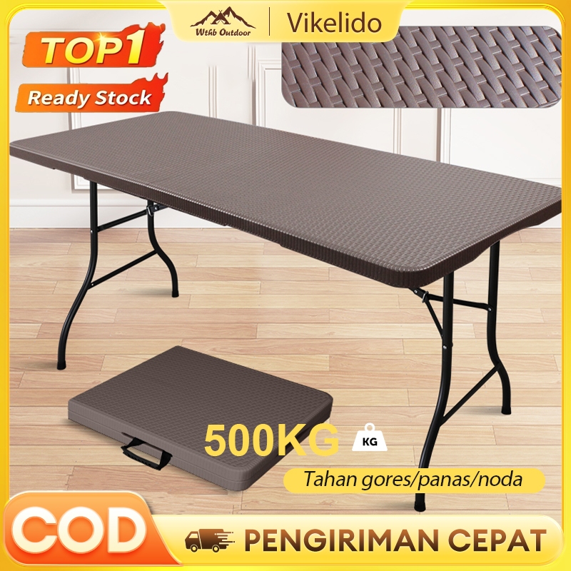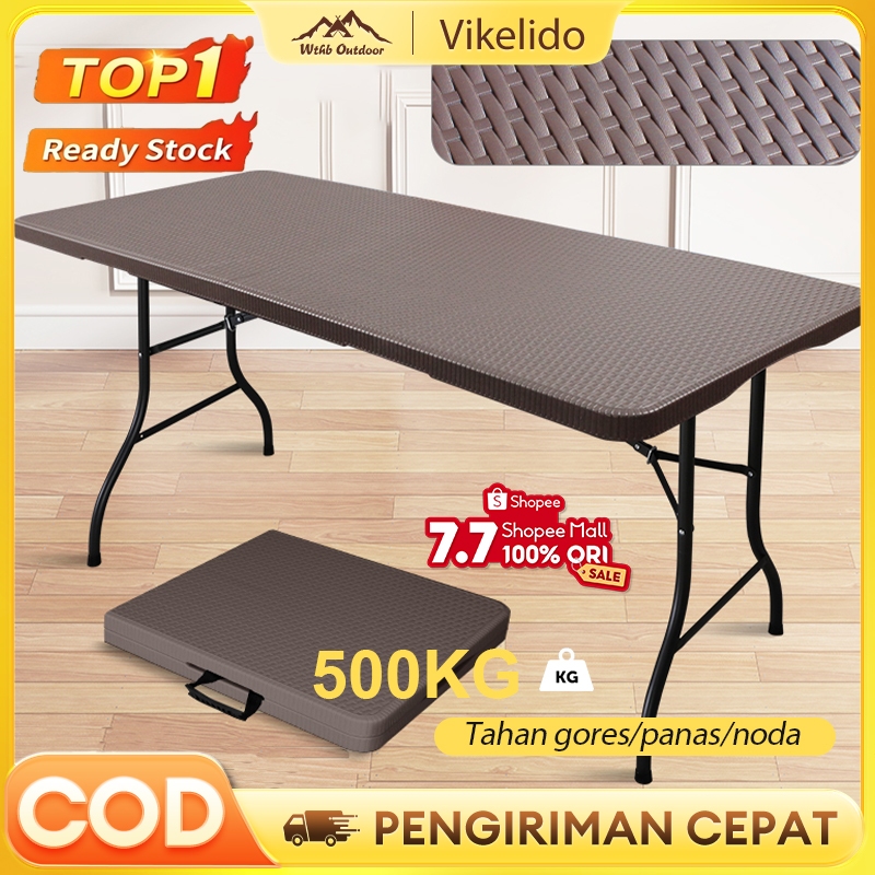 MEJA LIPAT PORTABLE COKELAT MEJA LIPAT JUALAN PENEBALAN 1.2/1.5/1.8M MEJA LIPAT PLASTIK MEJA LIPAT OUTDOOR INDOOR