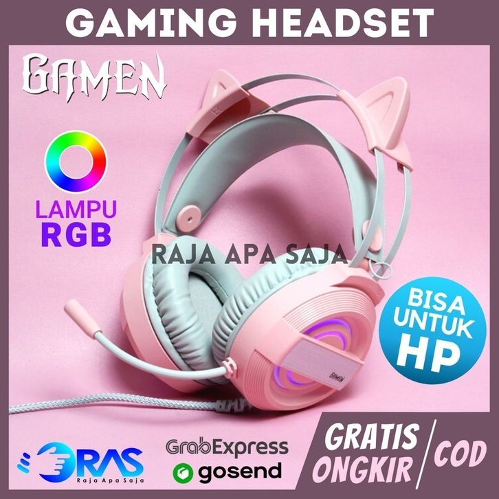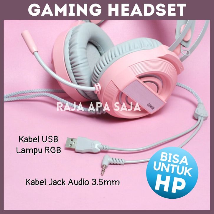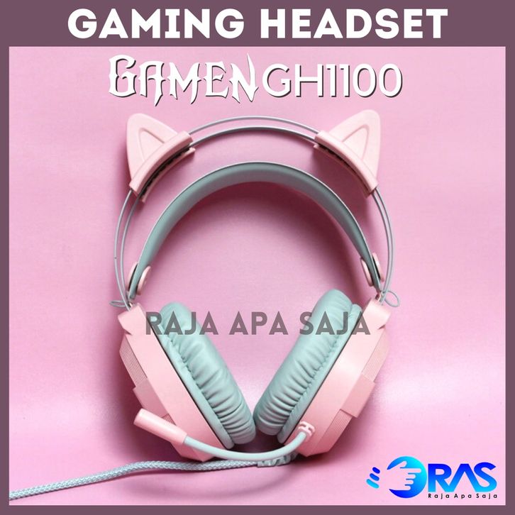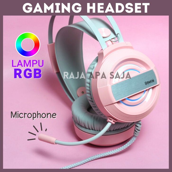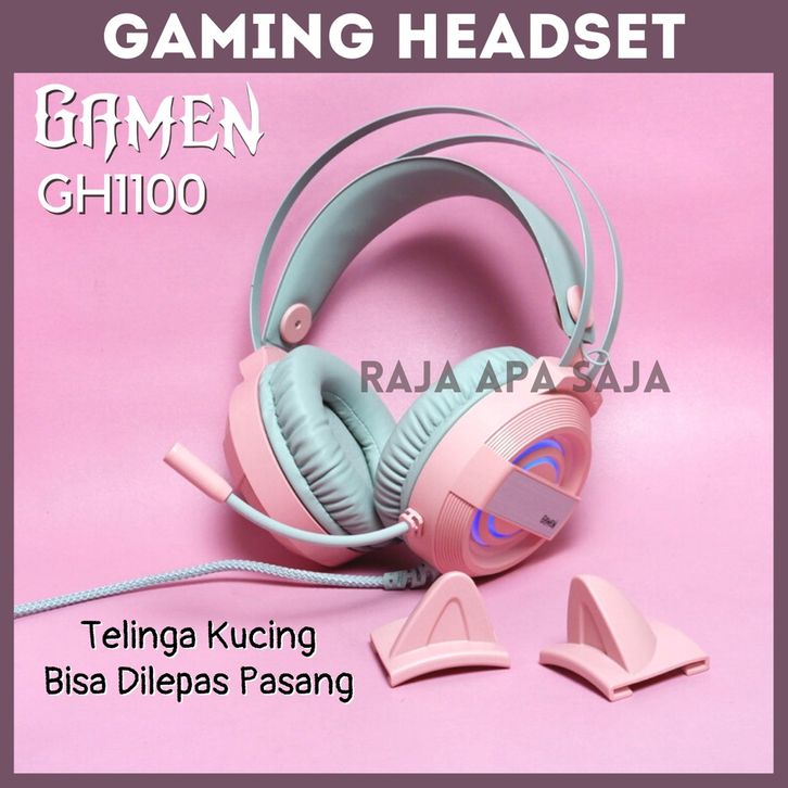 Headset Gaming RGB Pink Gamen GH1100 Full Bass LED Mic