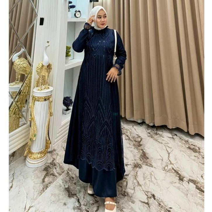 baju kondangan wanita novita dress silk roberto mix tile spanggel premium mewah kekinian warna viral