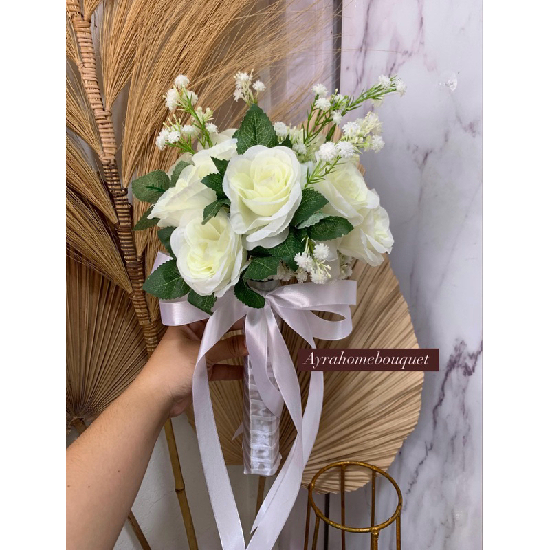 HAND BUKET WEDDING | BUKET BUNGA MAWAR PUTIH ARTIFICIAL WEDDING