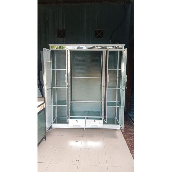 lemari baju 4 pintu buka tutup kombinasi lis plang+laci