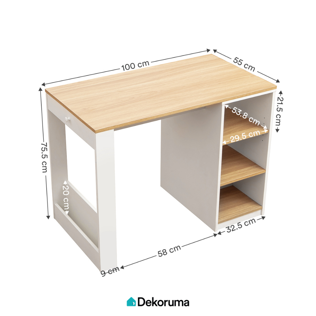 DEKORUMA KINO MEJA BELAJAR KAYU DENGAN RAK PENYIMPANAN - MEJA KERJA