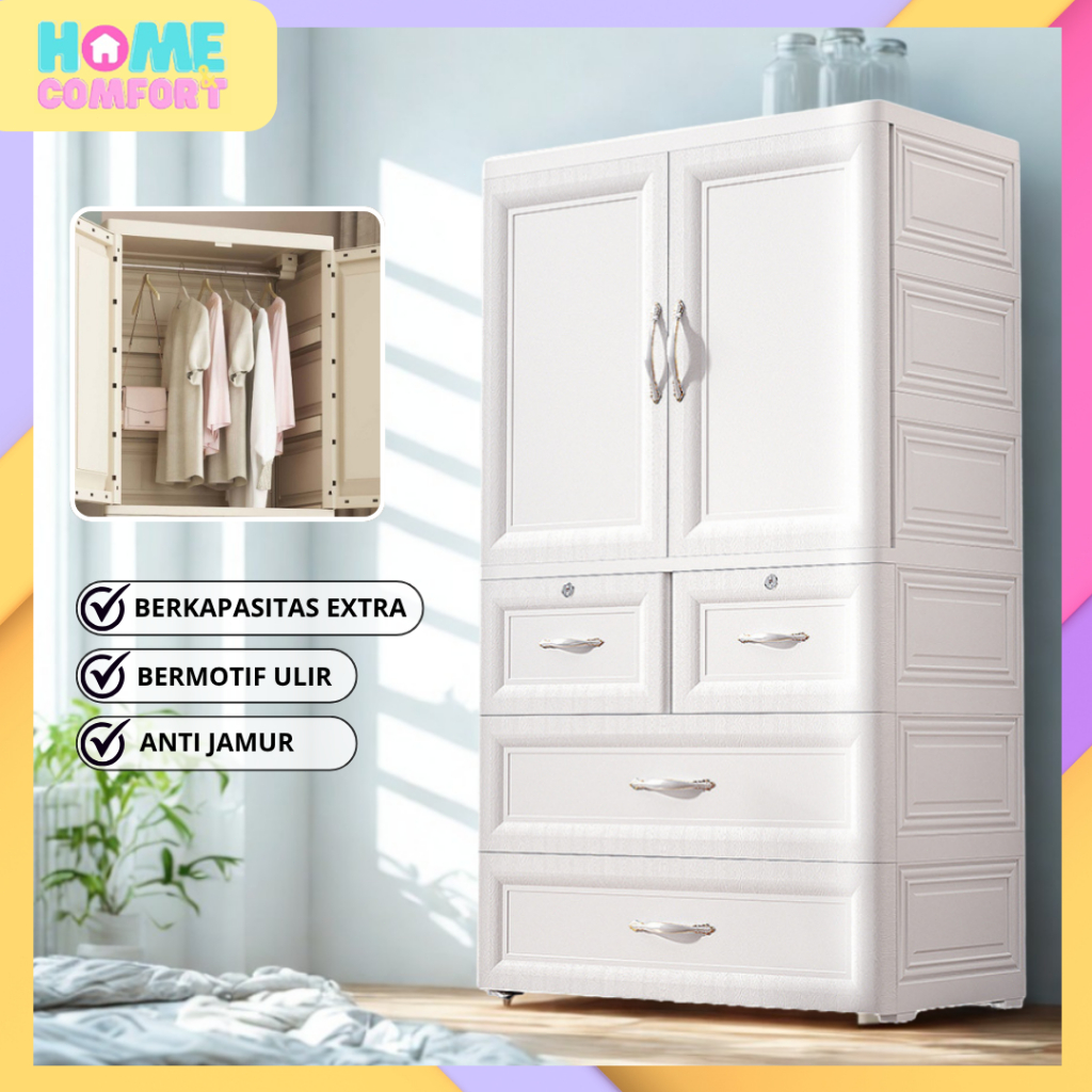 Lemari Pakaian Plastik Gantung Laci Susun Lemari Plastik Premium Lemari Pakaian Serbaguna Wardrobe Baju Rak Serbaguna