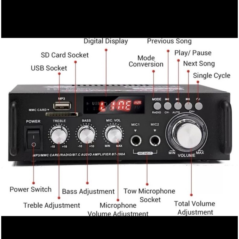 (PCB Warna Merah)Kerndy 298A Bluetooth Audio Amplifier Karaoke Home Theater FM Radio 300W+300W