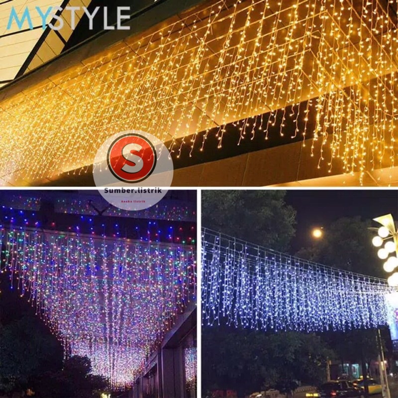 LAMPU LED Tirai Putih / Warm White/Biru/Merah/Hijou/RGB