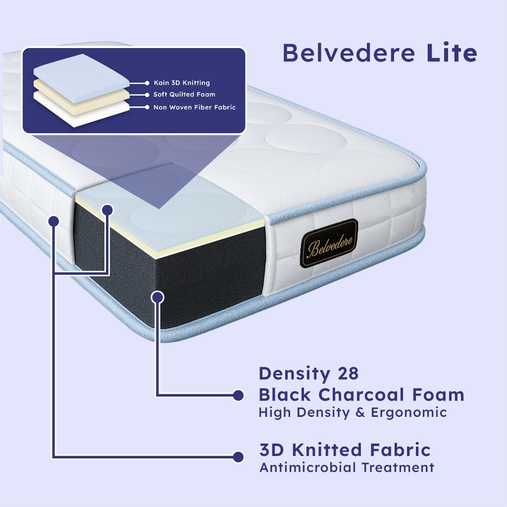 BELVEDERE MATRAS LITE - FREE BANTAL / HIGH DENSITY 28 BLACK CHARCOAL FOAM/ KASUR BUSA BOX 10CM, 14CM