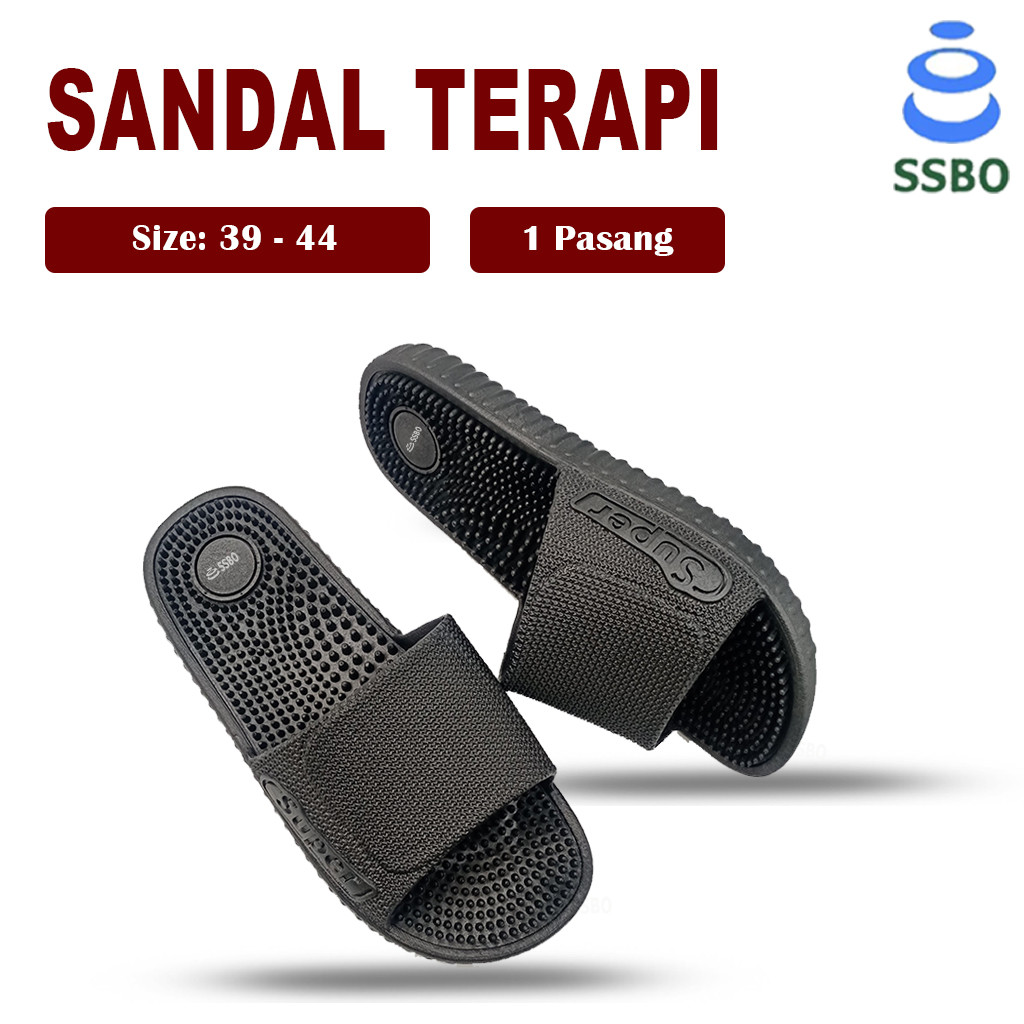 SSBO Sandal Terapi Kesehatan Sandal Terapi Anti Slip Sandal Karet Hitam Sandal Pijat Anti Licin