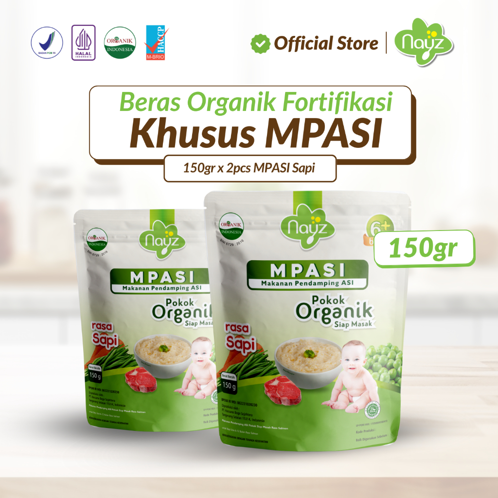(Paket isi 2) Nayz Beras Organik Rasa Sapi Fortifikasi Khusus MPASI Bayi 6+ Bulan - 150gr