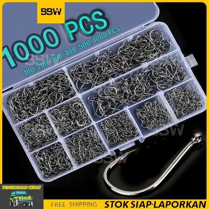 Kail Pancing Aneka Ukuran Bahan Baja Karbon Dengan Tali Pengait Kail Pancing Swan Akita Kitsune Kail OtomatisSet1000Pcs