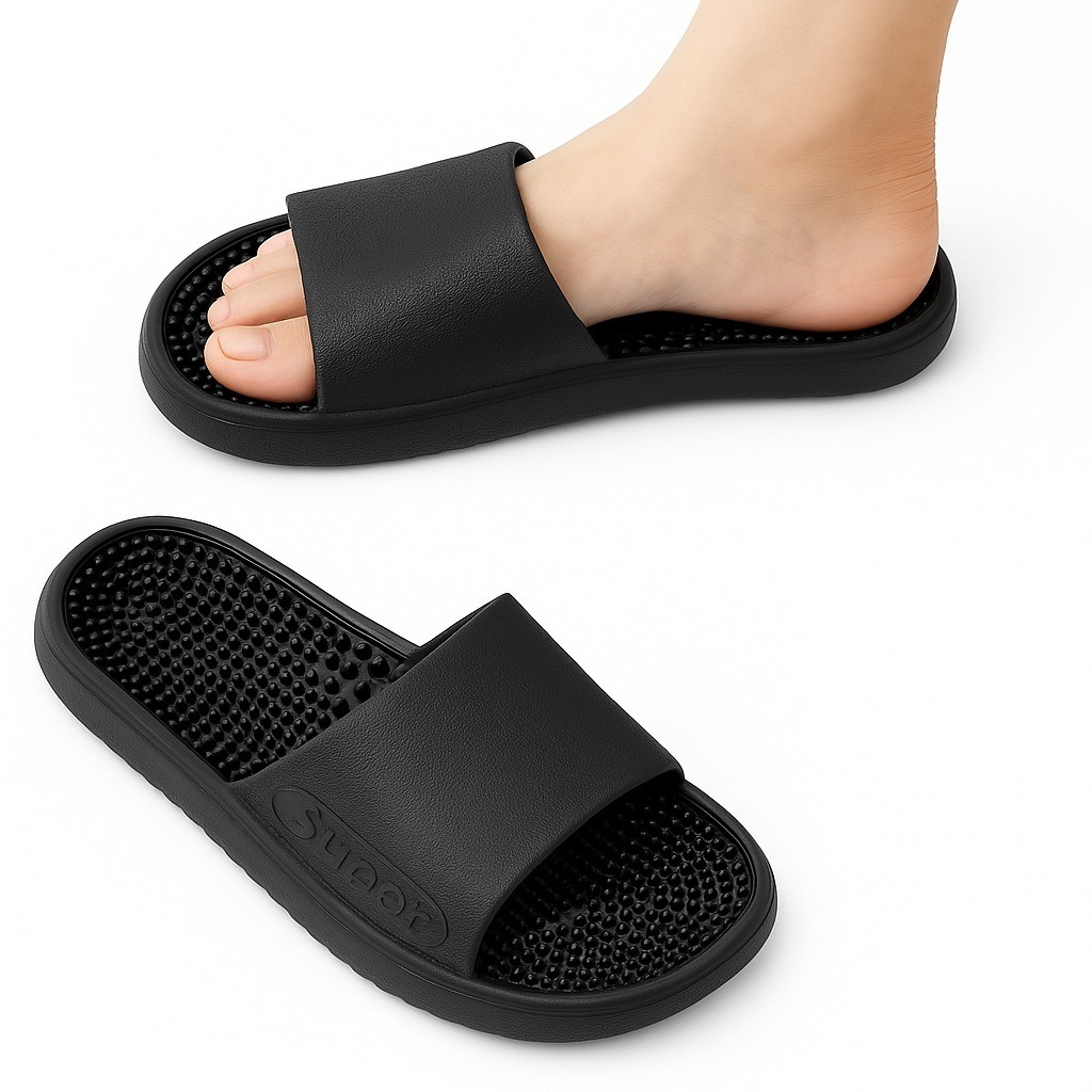 SANDAL PIJAT PERAWATAN KESEHATAN SANDAL TERAPI ANTI SLIP SANDAL KARET HITAM KASUAL PIJAT